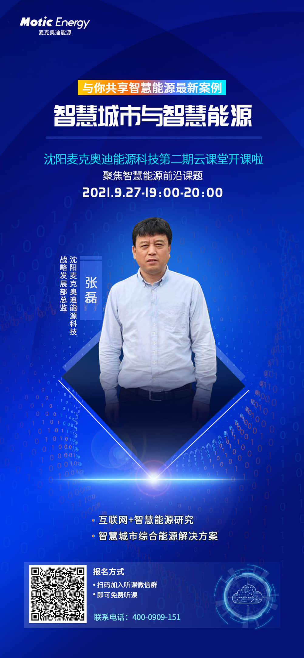 9月27日(周一)晚7:00我们邀请到沈阳麦克奥迪能源科技有限公司战略发展部总监张磊为大家带来《智慧城市与智慧能源》的主题分享,与您共享智慧能源领域的最新案例。