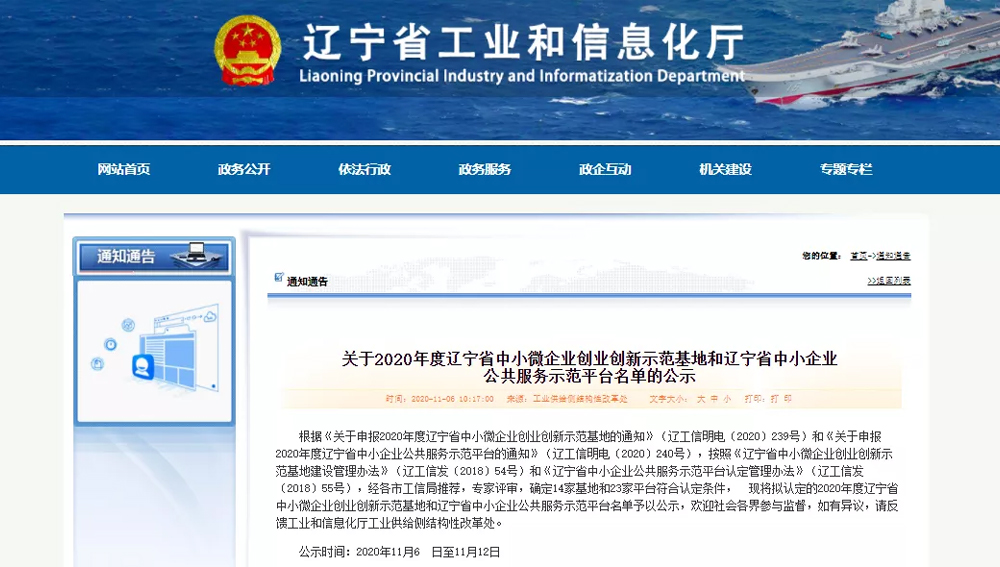 辽宁省中小企业公共服务示范平台是由辽宁省工业和信息化厅认定,能够为中小企业提供信息、技术、创业、培训、融资等公共服务,评选出的管理规范、业绩突出、公信度高、服务面广、具有示范带动作用并在专业服务领域有一定品牌影响力的服务平台。